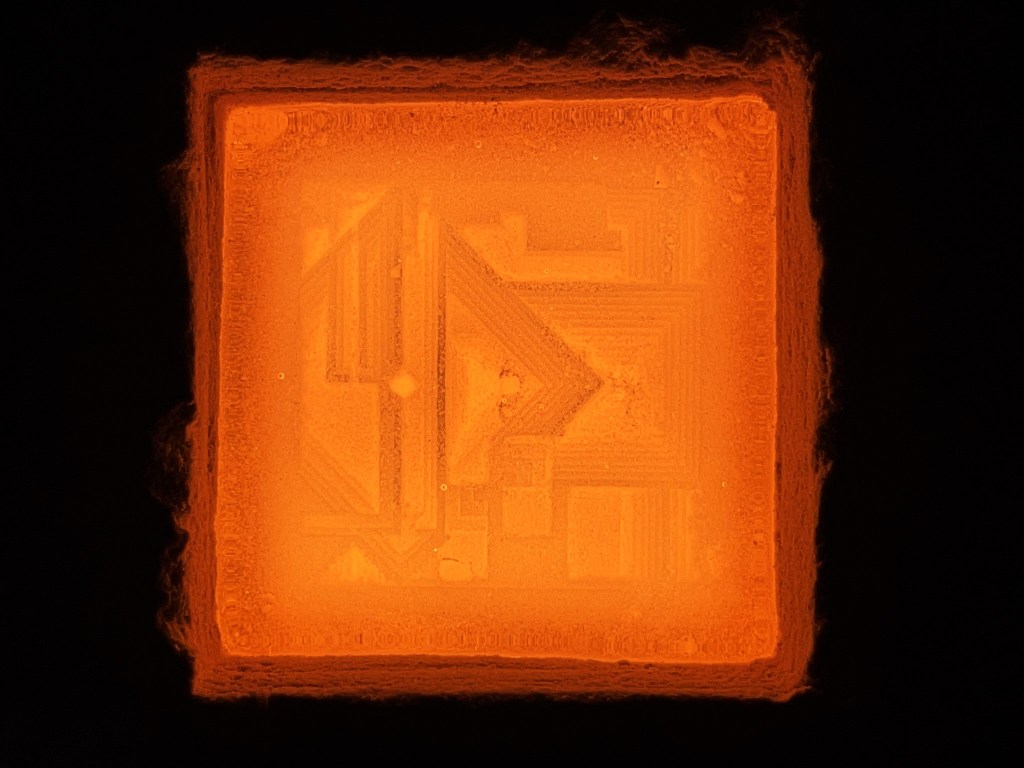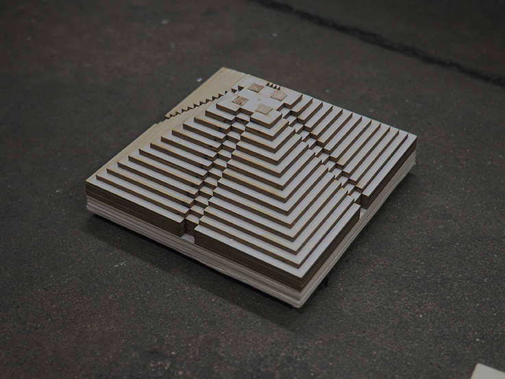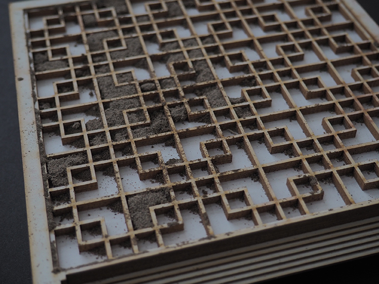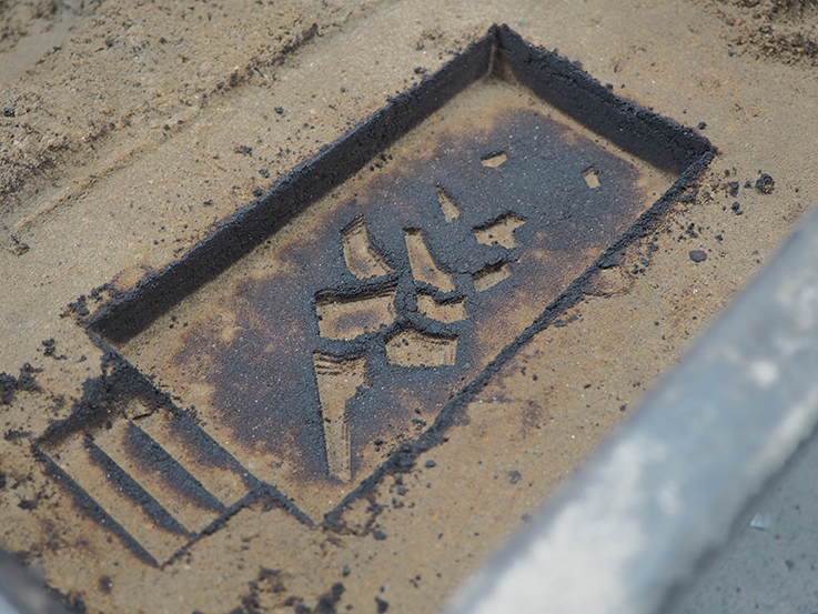 Molds are created by stacking pieces of material together, then stamped into sifted sand. Objects form as molten glass is poured into their impressions. One day, the objects may be set into the frame of a window or multiplied to form a partition.